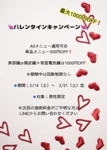 男性限定💘バレンタインキャンペーン💘 最大1000円OFF❗️